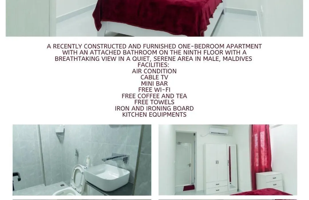 Beautiful Comfy Daily One Bed Room apartment lies not far from Villingili Public Beach and features laundry and ironing service. The venue has tile floors.